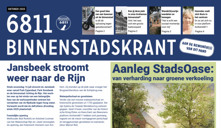 Wij zijn Arnhem6811, hét platform dat opkomt voor de belangen van bewoners in de binnenstad! Samen zetten we ons met bewoners in om wonen in de binnenstad fijn te maken en te houden. Woon je in de binnenstad en wil je je op wat voor manier dan ook bij ons aansluiten? Of heb je een idee om onze wijk nóg mooier te maken? Dan horen we graag van je!